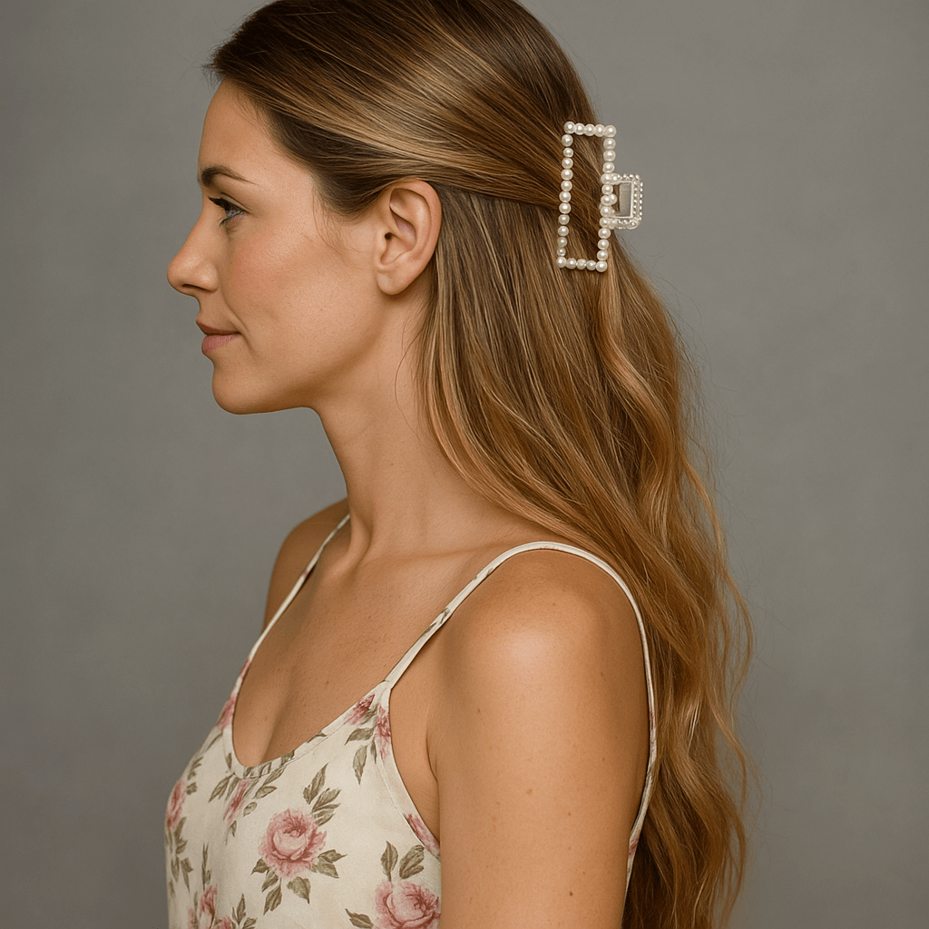 Discover the season's most sought-after hair accessory. Tangled Claw – Pearl Edition combines classic pearl beauty with modern design. The result? A stylish claw clip that elevates every look – whether you're aiming for effortless everyday style or party-ready elegance.